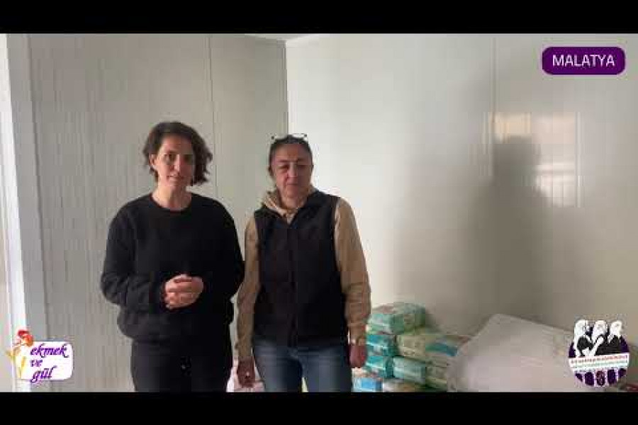 Malatya Ekmek ve Gül Grubu, depremin üzerinden 76 gün geçmesine rağmen, süren hijyen sorunlarına ve kadınların temiz suya erişememesine dair Cemal Gürsel’de bulunan Kadın Dayanışma Merkezinin önünde basın açıklaması düzenledi.