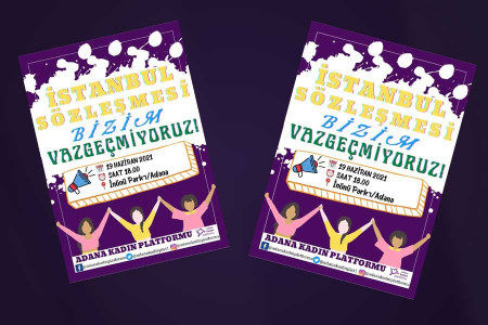 Adana Kadın Platformu tüm kadınları 19 Haziran'da saat 18.00’de İnenü Parkı’nda ‘İstanbul Sözleşmesi’nden Vazgeçmiyoruz’ demeye çağırıyor.