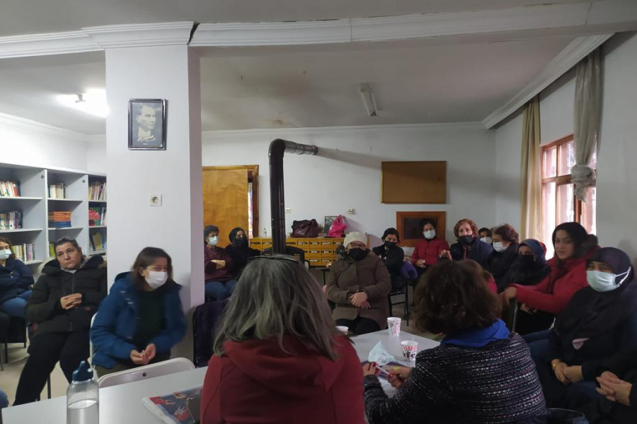 Mamak’ta Ege Mahallesi Halk Kütüphanesinde kadınlar “8 Mart’a Doğru Ekmek ve Gül Kadın Buluşmaları” kapsamında bir araya geldi. Avukat İlke Işık ile kadınların haklarını içeren yeni yasal düzenlemeleri konuşan kadınların gündemini Ukranya ve Rusya arasındaki savaş da oluşturdu. Etkinlikte İstanbul Sözleşmesi’nden çekilme, nafakaya dair düzenlemelerin kadınların yaşamını nasıl etkileyeceği anlatıldı. Eğitimdeki düzenlemelerin de eşitsizliği derinleştirdiği vurgusu yapılan etkinlikte 4+4+4 uygulamasından sonra, açık lise uygulamaları ile kız çocuklarının örgün eğitimin dışına itilerek çocuk evliliklerin yolu açılmış olduğu belirtildi. Toplumun her kesiminde olduğu gibi eğitim alanı da eşitsiz ve cinsiyetçi içerikle sürdürüldüğü, AKP iktidarı boyunca kadınların her gün yaşadıkları şiddet, tehdit ve ölümler sürerken kadını koruyan değil tam tersine suçluyu koruyan yasaların birbiri ardına çıkarılmaya çalışıldığı ifade edildi. Şiddet ve ayrımcı uygulamalar ile kadınların daha da mağdur edildiğine dikkat çekilen etkinlikte bütün bunlara karşı mücadeleyi yükselterek dur denilmediğinde daha önce Meclisten geçiremedikleri istismar faillerini aklayacak yasayı geçirmeyi yeniden deneyecekleri vurgulandı. Her bir hak kaybedildiğinde yeni bir saldırının da yolu açılmış olacağına işaret edilirken, bütün bu saldırılara güçlü bir tepki vermek gerektiği vurgulandı. Kadınların toplantıyı dikkatle ve ilgiyle dinledi.