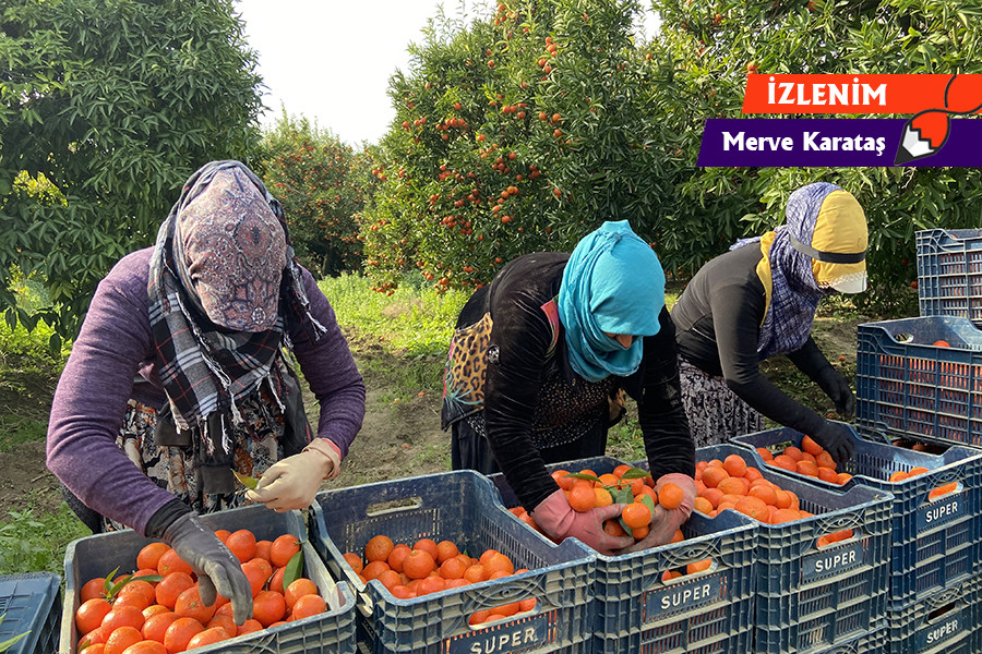 Gün doğmaya başlayıversin mesai de başlıyor tarım işçileri için. Bahçeye girdiğimiz anda mandalina ağaçları, sanki toplanmaya başlandığını hisseder gibi o güzel kokusuyla sarıyor her bir tarafımızı. Turuncu ve yeşilin uyumu güneşin de ortaya çıkmasıyla büyüleyici bir hal alıyor. Cennet hissi veren burası tarım işçileri için bazı zamanlar cehennem. Niye mi? Bu soğukta 1 kamyon ufak mandalina toplamak zorundalar. Ağaçtan kesilecek, sepete doldurulacak, yere düşenlerden sağlam olanlar toplanacak, küfeye eklenecek, küfeden tezgaha oradan da paletlerle kamyona. Ne zaman kamyonu doldurursalar o zaman iş bitecek.