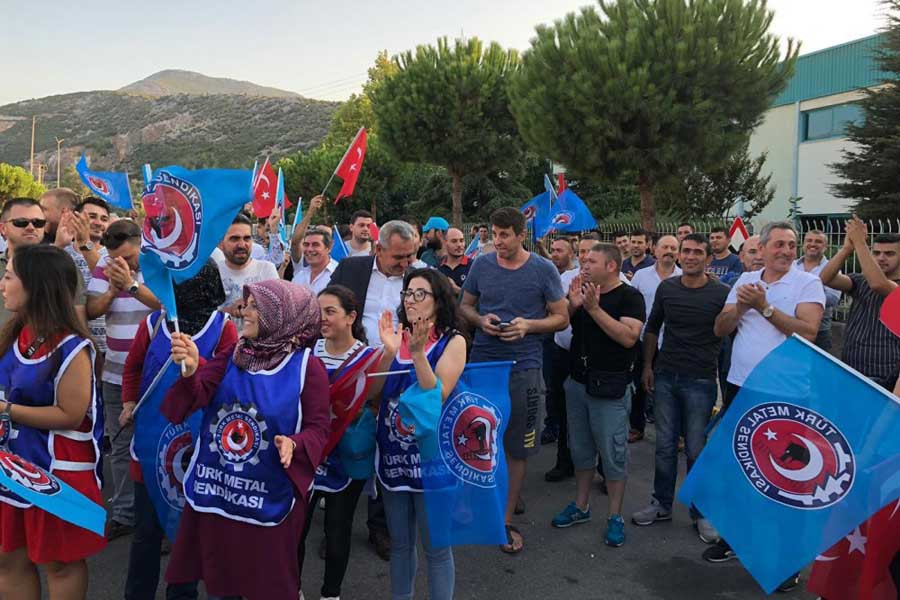 Manisa Organize Sanayi Bölgesinde yer alan elektrik malzemeleri imalatı yapan Ekinler Endüstri’de Türk Metal Sendikasında örgütlenmeye çalışan işçiler işten çıkarıldı. Toplamda 24 işçinin çıkarıldığı fabrika önünde işçiler eylem yaptı.