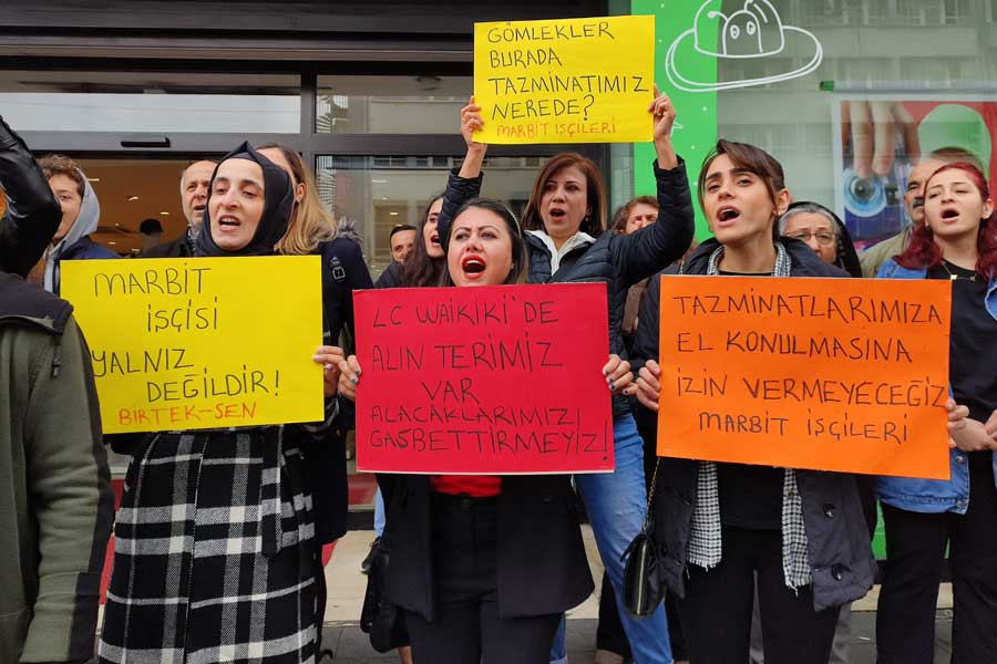 İşçiler “Buradaki işçi arkadaşlarımız LC Waikiki gömleklerini diken işçiler” derken son olarak şunları söyledi: “Bugün LC Waikiki elde ettiği yüksek karın altında Mar&Bit işçilerinin altın teri yatıyor. Burada LC Waikiki’nin de sorumluluğu olduğunu düşünüyoruz. İşçilerin hakları ödenmediği takdirde LC Waikiki ürünlerini boykot etmeye çağırıyoruz.”