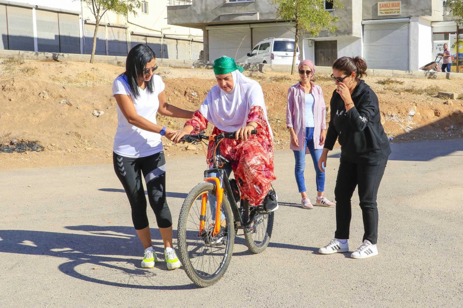 Hayatlarında ilk kez bisiklete binen, bisiklet kullanmayı öğrenen kadınların ise mutlulukları yüzlerinden okundu.