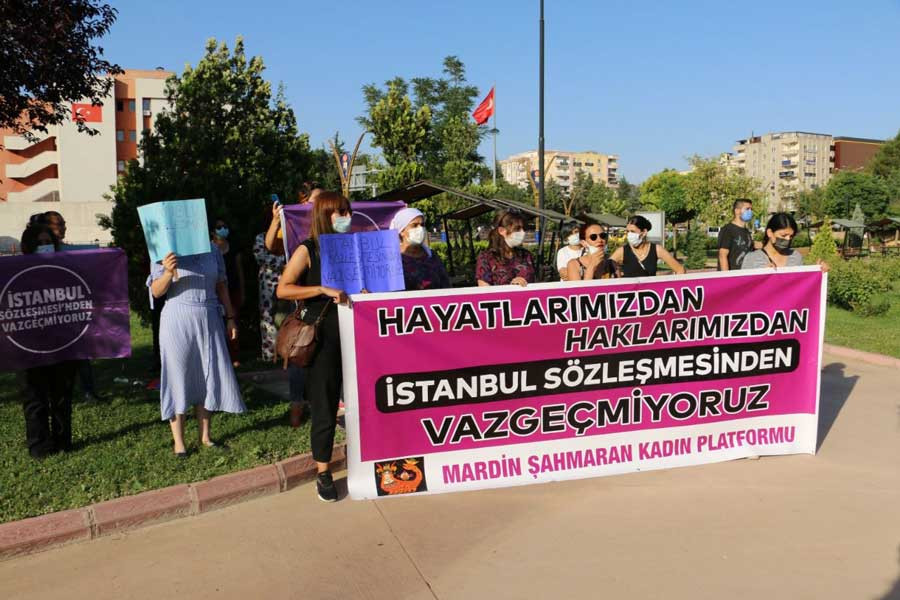 Mardin Şahmaran Kadın Platformu üyesi kadınlar, İstanbul Sözleşmesi’ne sahip çıkmak için 15 Temmuz Şehitler Parkı’nda açıklama yaptı. Açıklamayı Mardin Şahmaran Kadın Platformu adına Derya Dal okurken, kadınlar “Bizi alanlardan uzaklaştırmaya çalışan zihniyete karşı alanlardan, haklarımızdan, hayatlarımızdan ve İstanbul Sözleşmesi’nden vazgeçmeyeceğiz. Demokratik, ekolojik, eşit,özgür bir yaşamı oluşturana kadar mücadele etmeye devam edeceğiz” dedi. Dal açıklamaya şöyle devam etti: “Ülkemizde kadın cinayetlerinin ve kadına yönelik şiddetin hızla tırmandığı bir dönemde, İstanbul Sözleşmesi’ne artık taraf devlet değilim demek ve bunu haklı bir gerekçeye dayandırabilmek mümkün değildir. Torba yasalar içine sıkıştırılan ve her yöne çekilebilir, keyfi yorumlara açık, iktidarın canının istediği gibi yorumladığı düzenlemeler ile anayasanın parça parça ortadan kaldırılmasına izin verilmemelidir. Şu anda, başta Anayasa’nın eşitlik ile ilgili 10. maddesi, kadınlar dahil herkesin yaşama, maddî ve manevî varlığını koruma ve geliştirme hakkını düzenleyen 17. maddesi, ailenin eşitlik ilkesi üzerine dayalı olduğunu belirten 41. maddesi, temel insan hakları konusundaki uluslararası sözleşmeler ile ilgili 90. maddesi gibi anayasanın birçok maddesi keyfi yorumlar yapılarak; hukuk dışı yasalar, kararnameler, tek kişilik kararlar çıkartılarak yok edilmeye çalışılmaktadır. İstanbul Sözleşmesi’nden bu hukuk dışı çıkış girişimi, sadece kadınlar ya da Türkiye açısından değil; insan hakları evrensel hukukunu altüst eden bir girişim olduğu için de dünya hukuk ve siyaset tarihine geçecektir. İktidarın kutuplaştıran, ayrıştıran, kendinde olmayan muhalif grupları düşmanlaştırmaya, terörize etmeye yönelik sistematik politikaları, medya aracılığıyla topluma ektikleri kin ve nefret tohumları son olarak İzmir HDP binasında, “88 Kadın Katledildi” pankartının arkasında Deniz Poyraz arkadaşımızın katledilmesine sebep olmuştur. Biz kadınlar olarak İktidarın toplumu birbirine düşürmeye, kutuplaştırmaya, ayrıştırmaya yönelik nefret ve düşmanlaştırıcı dilinden vazgeçmeye çağırıyoruz. Biz kadınlar, bizi alanlardan uzaklaştırmaya çalışan zihniyete karşı alanlardan, haklarımızdan, hayatlarımızdan ve İstanbul Sözleşmesi’nden vazgeçmeyeceğiz. Demokratik, ekolojik, eşit, özgür bir yaşamı oluşturana kadar mücadele etmeye devam edeceğiz.”