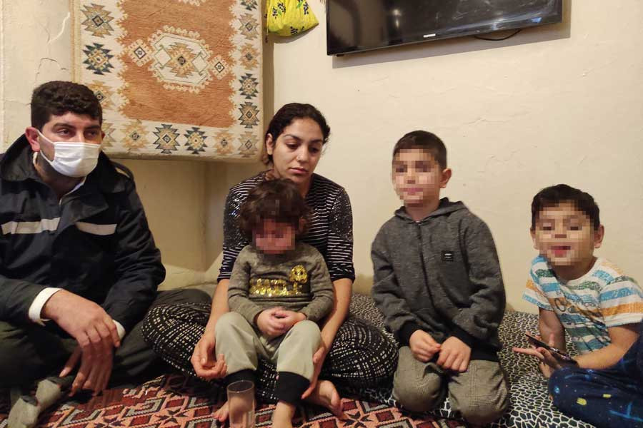 Lüks apartmanların dibinde, derme çatma yapılan evin ikinci katında yaşıyorlar. İki göz odanın aylık bedeli 900 lira. İçeride ağır bir rutubet kokusu… Bir çekyat, bir minder, eski bir soba ve duvarda bir televizyonun bulunduğu odada yaşıyorlar. Sobanın içindeki kömür bile borçla alınmış. Evin iç kapıları bulunmuyor. Tuvaletin kapısı olmadığı için bezden perde yapılmış. Ağır bir yoksulluk evin dört yanını kaplamış durumda.
