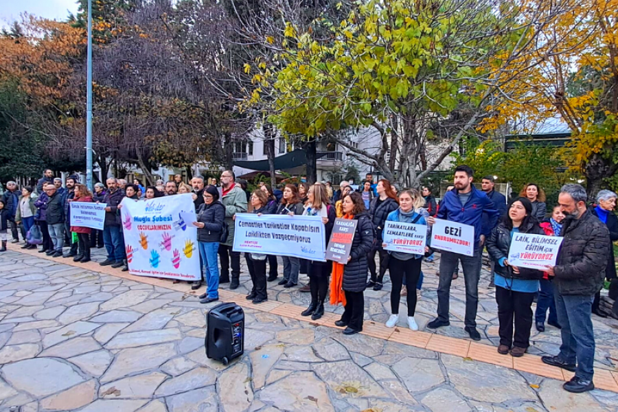 Muğla’da Menteşe Kadın Platformu ve Veli-Der, çocuk istismarına karşı Sınırsızlık Meydanı’nda basın açıklamadı düzenledi. Açıklamada, “Cemaatler, tarikatlar kapatılsın. Laiklikten vazgeçmiyoruz” pankartı açıldı.