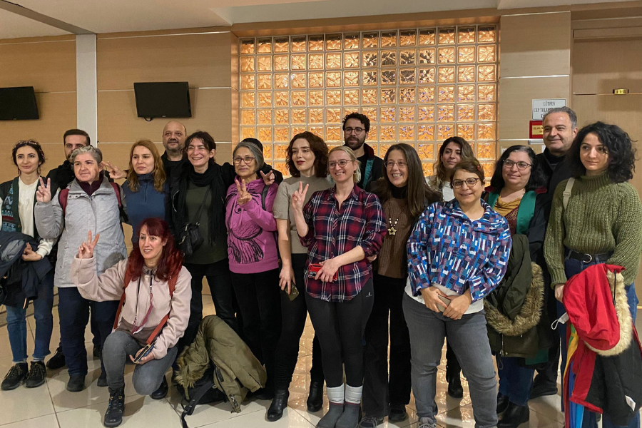 Diyarbakır ve Ankara'da gazetecilerin gözaltına alınmasına tepki göstermek için İstanbul Kadıköy'de basın açıklaması yapmak isterken darbedilerek gözaltına alınan 6 kadın gazeteci hakkında açılan davanın ilk duruşması bugün, 10 Ocak Gazeteciler Gününde görüldü. Eylem Nazlıer, Pınar Gayıp, Zeynep Kuray, Yadigar Aygün, Serpil Ünal ve Esra Soybir İstanbul Anadolu 22'nci Asliye Ceza Mahkemesinde görülen davanın ilk duruşmasında savunmalarını yaptılar. Gazeteciler hakkında suç duyurusunda bulunulan yasak kararının, gazetecilerin elindeki görüntülerin sunulmasının, gözaltı sırasındaki polis görüntülerini İkinci duruşma 16 Nisan saat 10.30’a ertelendi.