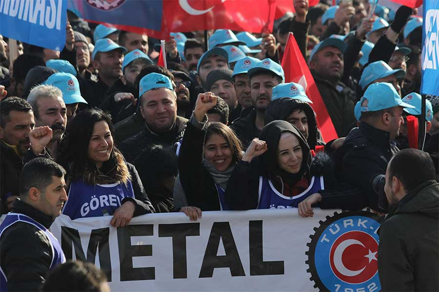 Türk Metal’in Bursa’da düzenlediği mitinge katılan metal işçileri, artan yoksulluğa öfkeli. Tepkilerini “Yetmiyor”, “Sosyal hayatımız yok”, “Yoksulluk ailemize yansıyor”, “Zaten aldığımız vergiye gidiyor” sözleriyle dile getiren işçiler, sendikalarının taslağında yer alan yüzde 26 zam talebinin bile erimeyi tam karşılamayacağına dikkat çekti. Hükümetin temel tüketim mallarına, doğal gaza, elektriğe yaptığı zamlar nedeniyle içine sürüklendikleri yoksulluktan kurtulmak isteyen işçiler, daha etkili eylem kararlarını uygulamaya hazır olduklarını dile getirdi.