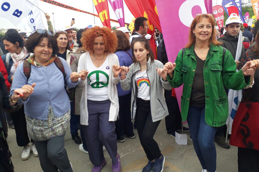 Ankara'da Tandoğan Meydanı'nda kutlanan 1 Mayıs'ta kadın emekçilerin bir gündemi de OHAL bahanesiyle çıkarılan Kanun Hükmünde Kararnamelerle işsiz bırakılmaktı. Yayınımızda KHK ile ihraç edilen, sendikalarında mücadele etmeye devam eden kadın emekçiler vardı.