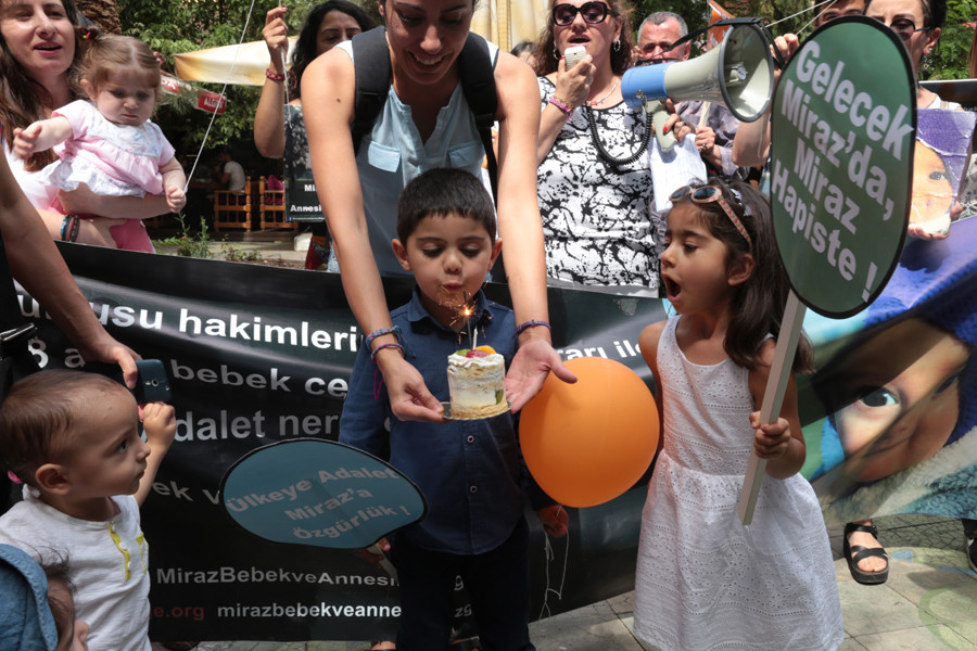 Annesiyle birlikte cezaevinde olan Miraz 1. yaş gününü kutlayacaktı. Ancak cezaevi yönetimi doğum günü pastasına izin vermedi.