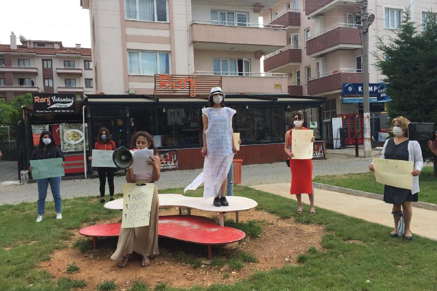 Kadınlar, “Herkes susarken susmayı asla kabul etmeyen biz kadınlar erk zihniyeti ve sistemi reddediyoruz. Her bir kadının sokaklarda özgürce koşabildiği, kahkahalarla dans edebildiği güne kadar alanlardan, meydanlardan, kampüslerden ve kürsülerden asla çekilmeyeceğiz.
