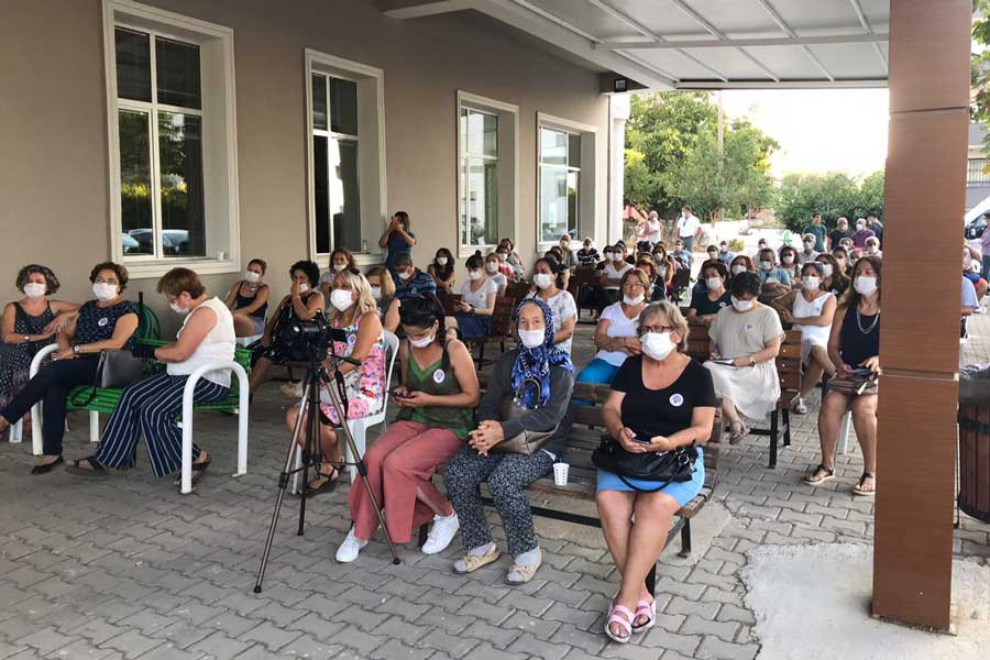 “İstanbul Sözleşmesi Yaşatır, Vazgeçmiyoruz” kampanyası kapsamında Balçova, Narlıdere ve Güzelbahçe’den bir araya gelen kadınlar, kampanya imzacısı olan demokratik kitle örgütlerine yaptığı çağrıyla Narlıdere Kültür ve Cem evinde bir etkinlik düzenledi. Etkinlik davetlilerin ve görevlilerin pandemi tedbirlerine uygun ortam sağlanabilmesi için açık havada yapıldı.