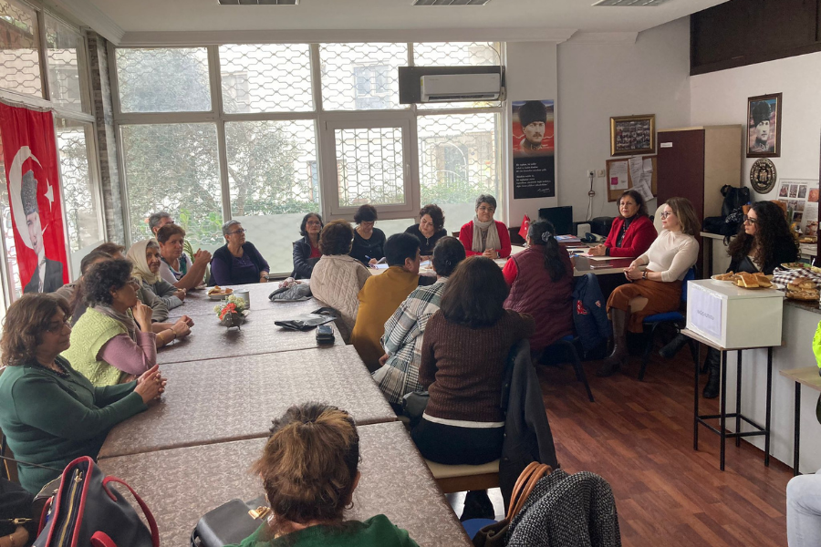 "Eve hapsedilmek istemeyen kadının sosyal hayata katılması için neler olmalı? Kadınların çalışma yaşamına katılabilmesi için yerel yönetimler neler yapabilir? Yaşlılar için hangi hizmetler gerekli? Çocuklarımızın gençlerimizin güvenli ortamlarda eğitim alması, özgürce sosyalleşmeleri için neler olmalı? Yerel yönetimler uyuşturucu bağımlılığı ile nasıl mücadele edebilir? Barınma hakkımıza dair neler talep etmeliyiz? Kadına yönelik şiddet, kadın cinayetleri konusunda yerel yönetimlere neler düşer? Deprem riskine dair nasıl güvenli önlemler alınmalı?" şeklindeki sorular üzerinden devam eden sohbet sonunda kadınlar hazırladıkları talepleri, derneği ziyarete gelen CHP Belediye Başkan adayı Erman Uzun’a iletti.
