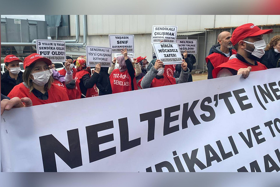 2020 yılında Gebze’de kurulan Nelteks firması medikal alandan otomotive, mobilya ve yataktan hijyen ürünlerine, inşaattan tarım ve seracılığa kadar çok farklı alanlarda kullanılan “Spunbond Nonwoven” malzeme üretiyor. Bu, sıcak presle birbirine bağlanan uzun liflerden yapılmış kumaş benzeri bir malzeme. Firma, sanayiye yönelik üretimlerin yanı sıra yine bünyesindeki konfeksiyon atölyesi ile bu malzemeden üretilmiş özel tasarım ürünler de geliştiriyor. İşçilerine “3 yıllık siparişimiz var, çok çalışacağız, çok kazanacağız, hep birlikte büyüyeceğiz” diyen patron, işçiler korkunç çalışma koşullarına karşı Tez- Koop- İş sendikasına üye olarak sendikalaşma mücadelesine girişince ve sendikal çoğunluk belgesi önüne gelince küçülmeden, hatta fabrikanın kapanmasından bahsetmeye başladı. Nelteks işçileri hem Nelteks’ten hem de asıl işveren olan Neşe Plastik’ten yasal ve demokratik haklarına saygı duymasını ve sendikayla görüşmeye başlamasını beklerken, patronlar önce baskılarla işçileri yıldırmaya çalıştı, ardından da sendikalı işçileri işten çıkarmaya ve küçülme bahanesiyle sendikal örgütlenmeye saldırmaya başladı. Nelteks işçileri ana firma Neşe Plastik’te Petrol-İş sendikasının örgütlü olduğunu hatırlatıyor. Şu an Nelteks’te işten atmalar sürerken, fabrika içinde çalışma ve yetkinin tanınması için bekleyiş sürüyor.