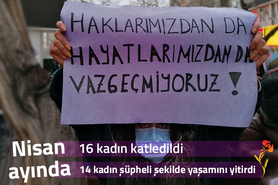 Kadın Cinayetlerini Durduracağız Platformu (KCDP), nisan ayında katledilen kadınların verilerini paylaştığı raporunu yayınladı. Rapora göre Nisan ayında 16 kadın katledildi, 14 kadın ise şüpheli bir şekilde hayatını kaybetti.