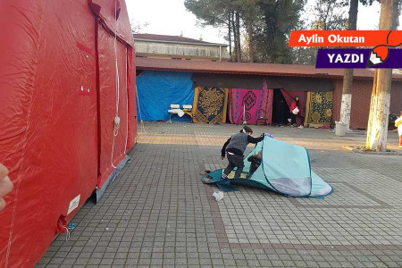 Depremden en çok etkilenen illerden olan Hatay’da İskenderun’un Karaağaç mahallesindeyiz. Depremin yarattığı yıkımın ardından insanların yaşamını sürdürmek için ihtiyaç duyduklarının büyük eksikliği yaraları daha da derinleştirmiş. Suzan Yıldırım, “Bu 40 günde çok eksik var. Çok büyük eksiklikler var. Kadınlar o kadar çok hijyen sorunu yaşıyorlar ki. Evet çadırkentler var ama ne şartlarda çadırkentler var, her şeyden yoksun. Felaket üzerine felaket yaşıyoruz, depremi atlattık ama yağmuruydu çamuruydu insanlar Per perişan. Çadırkentlerdeki tuvaletler berbat. Çok yakında rahatsızlıklar da başlar. Kelimeler yetersiz kalıyor yaşadıklarımızın yanında. Çok zor, kayıplarımız çok. Onların acısını daha yaşayamadık çünkü o kadar çok etrafımızda acı yaşayan, eksiği olan insanlar var ki kendi acımızı içimize gömmüş durumdayız” diye anlatıyor.