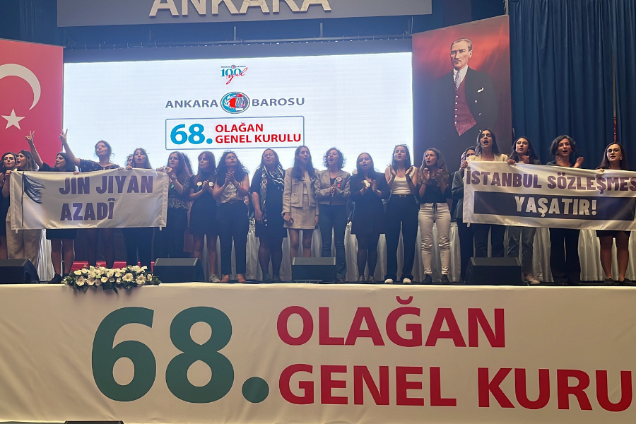 Özgürlükçü Çağdaş Avukatlar grubundan (ÖÇAV) kadın avukatlar, Ankara Barosu 68’inci Olağan Genel Kurulu’nda uğradıkları saldırıya ilişkin açıklama yaptı. Açıklamada, Kürtçe slogan atıldığı gerekçesiyle avukatların saldırıya uğradığı belirtilerek, “Her türlü avukatlık pratiğimizi bu sloganlara yaraşır şekilde yapmaya devam edeceğiz. Bu mücadelede şiddete karşı kadın avukatlar olarak sözümüzü söylemeye devam edeceğiz” denildi.