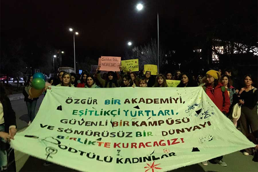ODTÜ’lü kadınlar 8 Mart Dünya Emekçi Kadınlar Günü öncesinde, 5 Mart’ta kampüste gece yürüyüşü düzenledi. Dünyada ve Türkiye’de kadınların mücadelesine ses veren kadınlar, “Yurtlardaki eşitsizlikler ODTÜ yönetimi tarafından kabul edilmesine rağmen hiçbir somut adım atılmıyor. Cinsiyetçilik ve ayrımcılık fakültelerimizde, bölümlerimizde artarak devam ediyor. Biz ODTÜ’lü kadınlar olarak özgür bir akademi, eşitlikçi yurtlar ve güvenli bir kampüs için mücadeleyi sürdüreceğimizi buradan bildiriyoruz” dedi.