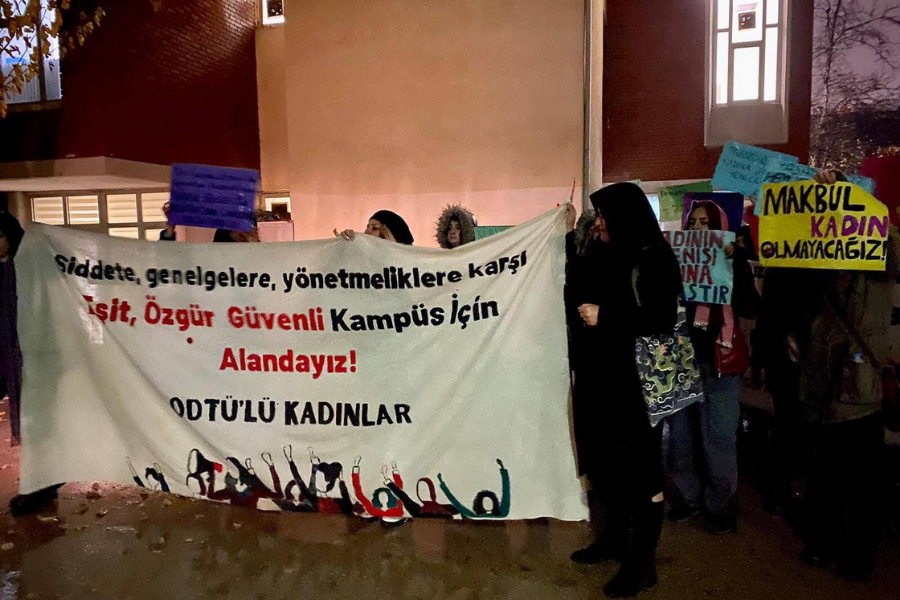 ODTÜ’lü kadınlar, 25 Kasım Kadına Yönelik Şiddete Karşı Uluslararası Mücadele ve Dayanışma Günü’nde gece yürüyüşü düzenledi. Kadınlar, yaptıkları açıklamada kampüste yaşadıkları baskılara karşı mücadele etmek istediklerinde yeni yurtlar yönetmeliğinin kadın birlikteliklerine karşı yurttan atılma tehdidiyle karşılaştıklarını ifade ederek, bulundukları her alanda mücadeleyi büyütmeye devam edeceklerini söyledi.