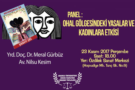Eskişehir’de Yrd. Doç. Dr. Meral Gürbüz ve Avukat Nilsu Kesim’in konuşmacı olacağı OHAL gölgesindeki yasalar ve kadınlara etkisi paneline çağrı var.