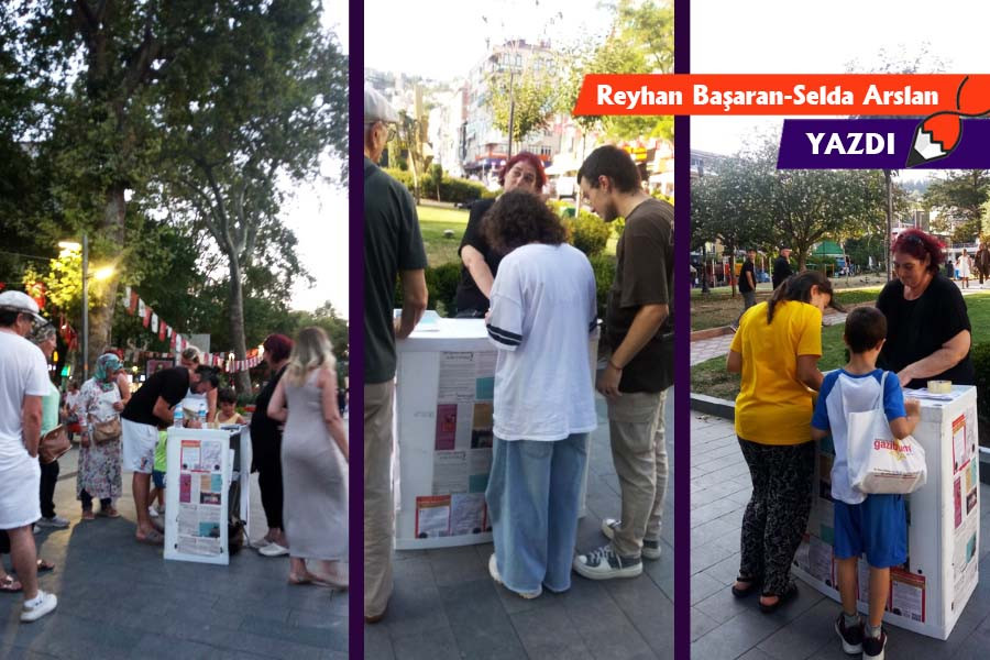 Giderek yoksullaştığımız, aldığımız ücretlerin eridiği, alım gücümüzün daha da düştüğü son yıllarda insanlar kaygı dolu, mutsuz, umutsuz. Standa uğrayan, standın yanından geçen herkesin yüz ifadesinden anlaşılıyor bu. Bazıları biraz ilerledikten sonra geri dönüyor imza vermek için. Standın yanından seslenmeye devam ediyoruz. Gözler ve kulaklar bize dönüyor. Merakla soruyor herkes birbirine “Bu nedir, ne için?” diye. O sırada merak ederek yanımıza gelen bir genç kadın yüksek sesle seslenen arkadaşımıza dönüp “Biraz daha net ve yüksek sesle seslenin lütfen. Net anlaşılmıyor, böyle söyledikleriniz. Ama herkes duyup bilmeli bu söylediklerinizi” diyor.