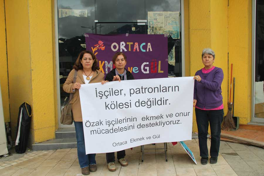 Ekmek ve Gül Kadın Grubundan Gürsel Özkaya yaptığı açıklamada, “Urfa Özak Tekstil’de çalışan işçiler, insanlık dışı çalışma koşullarına ve baskılara karşı, patronun tercih ettiği ve altı yıldır yetkili sendika olan Öz İplik-İş’ten istifa ederek, anayasal haklarını kullanarak sendika değiştirerek BİRTEK SEN sendikasına üye oldular. İşçilerin kendi iradeleriyle seçtiği BİRTEK-SEN üyesi bir kadın işçinin işten atılması üzerine, fabrikada uzun süredir yaşadıkları baskı ve tehditlere karşı üretimi durdurarak direnişe başladılar” dedi.