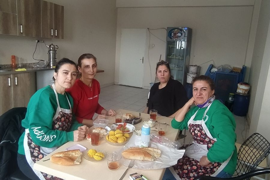 Kadın işçiler ayrıca taleplerini de iletti. Yerel yönetime aday olanlara seslenen Biter, “Ola ki belediye başkanı değişti, yeni gelen yönetimin de bizlere destek olmasını istiyoruz. Kadınların çalışmasını önemseyen, destekleyen bir yaklaşımları olsun. Burası iş sahası olan bir yer değil, eksikliklerimiz var, kendimiz temin etmeye çalışıyoruz. Daha çok üretim yapsak para kazansak aracı da asgari ücret alır. Hatta başka kadınlar da çalışmaya başlar. Yaz dönemi kendi imkanlarımızla diktiğimiz elbise, şalvar gibi şeyleri stant açıp satarak ek gelir elde etmeye çalışıyoruz” dedi.