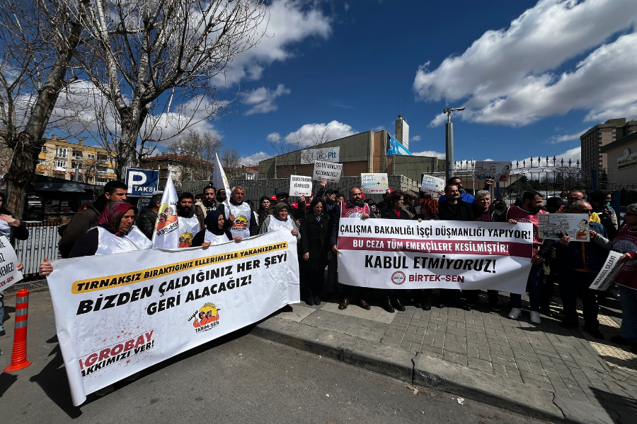 Agrobay işçisi kadınlar 1.5 milyon lira ceza kesilen BİRTEK-SEN ile dayanışmak için 12.30'da Çalışma ve Sosyal Güvenlik Bakanlığı önünde basın açıklamasına katılacak.