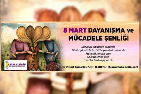 Kadınlar her 8 Mart'ta olduğu gibi bu yıl da tüm dünyada alanlarda olacak. Kadınlar olarak Birlik, Dayanışma ve Mücadele kararlılığımızı ve sözümüzü bir kez daha ortaya koyacağız. Çünkü hayatın her alanında üretmemize ve toplumun yarısını oluşturmamıza rağmen payımıza düşen eşitsizlikler yığını ve şiddet sarmalı. Bu yıl da şiddete, sömürüye, ezilmeye, eril zihniyete, cinsiyetçiliğe, tacize, tecavüze, kadın katliamlarına karşı sesimizi bir kez daha yükseltmek için bir araya geldik. Gücümüzü birliğimizden alıyoruz ve bu bilinçle eşitlik ve özgürlük mücadelemizi sürdürüyoruz.