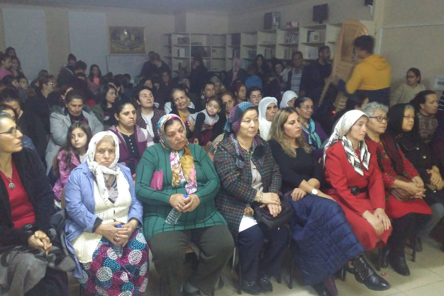Psikolog doktor Müberra Yenişar ve Avukat Tuğçe Çelik Karademir’in kadına yönelik şiddete ilişkin sunumlar yaptığı etkinlikte kadınlar kendi hazırladıkları 2 tiyatro oyununu da sergiledi.