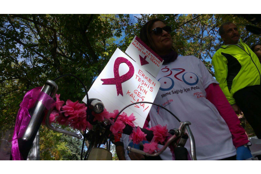 Ankara’da Kurtuluş Parkında toplanan Metastik Meme Kanseri Derneği (Metamozom) ve Pedallayan Kadınlar, pedallarını meme kanseri ve kadın sağlığına farkındalık için çevirdiler.