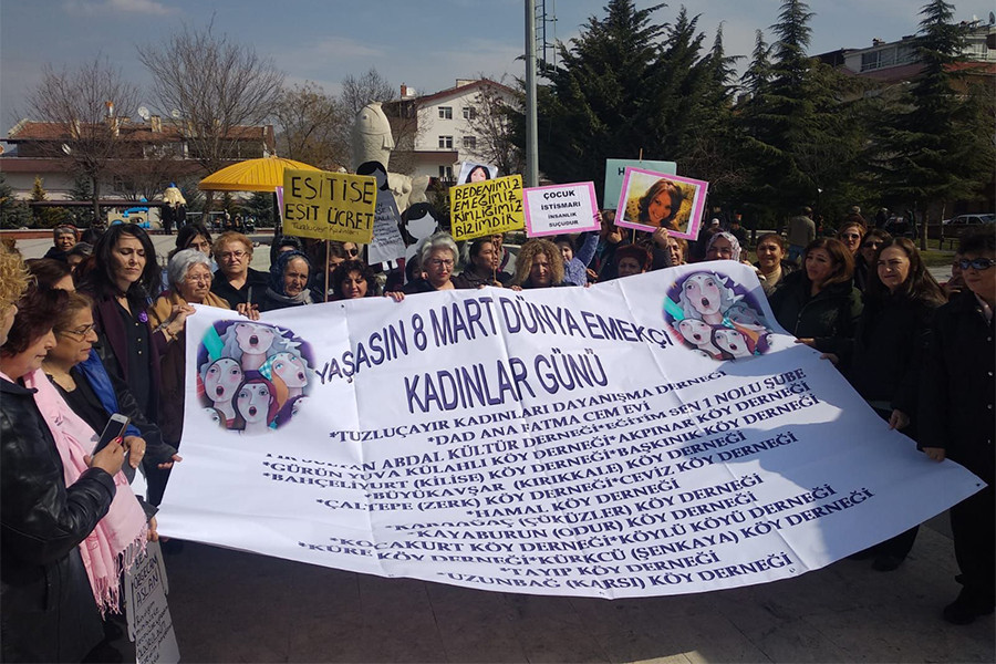 Tuzluçayır Kadınları Dayanışma Derneği, Eğitim-Sen 1 Nolu Şube ve Pir Sultan Abdal Kültür Derneği’nin yanı sıra 16 Köy Derneği, ‘Krize, Şiddete, İstismara ve Eşitsizliğe Karşı Yan Yana Birlikte Daha Güçlüyüz’ diyerek gün boyu sürecek 8 Mart etkinliğinde buluştu. ‘Yaşasın 8 Mart Dünya Emekçi Kadınlar Günü’ pankartını açan kadınlar adına ortak açıklamayı okuyan Tuzluçayır Kadınları Dayanışma Derneği üyesi Mehtap Akyüz, kadınların ve çocukların yaşadığı eşitsizliklere dikkat çekerek, “Bizler çaresiz değiliz. Yaşadığımız tüm bu sorunları dayanışarak, paylaşarak ve bir araya gelerek aşacağız”dedi.