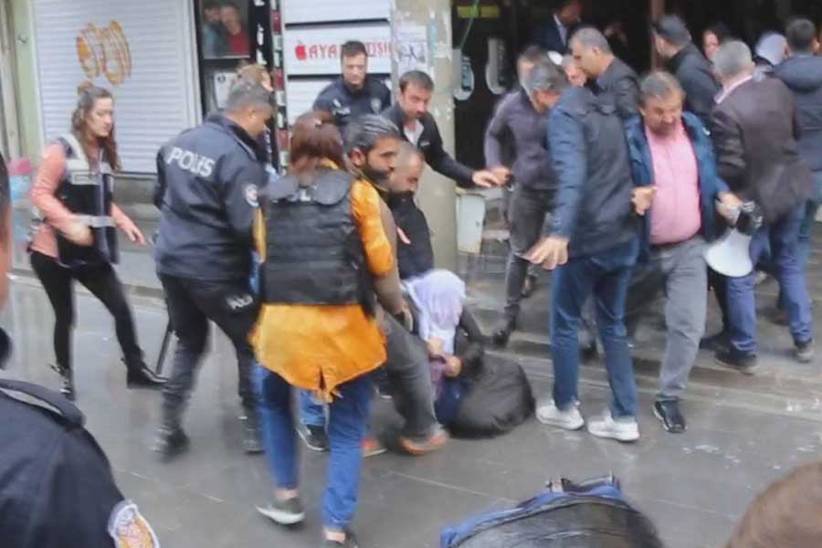Ancak yapılacak açıklama öncesi her iki partinin bulunduğu binanın önünü ablukaya alan polisler, açıklama yapılmasına izin verilmeyeceğini belirtip, dağılmalarını istedi. Yapılan görüşmeler sırasında Barış Anneleri’nin ellerindeki dövizler polisler tarafından zorla alındı.Engellemeye rağmen açıklama yapmaya başlayan Barış Annesi Hevlet Öncü, sadece barış talep ettikleri, cezaevinden çıkacak bir cenazeye daha tahammülleri olmadığını ifade etti. Bu sırada biber gazı ve TOMA’dan sıkılan tazyikli su ile gruba saldırdı.