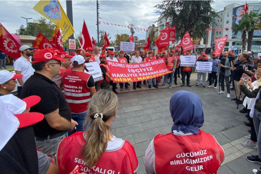 Polonez fabrikasında düşük ücrete, mobbinge ve fazla mesailere itiraz eden işçiler sendikalaşınca işten atıldı. 146 işçinin haftalardır sürdürdüğü eylemlerde fabrikaya giriş çıkışlar kapatılınca, polis işçilere müdahale ederek ters kelepçe yaptı. Duvar’dan Osman Çaklı’nın haberine göre dün gözaltına alınan 85 işçi, bugün Çatalca Kaymakamlığı önünde buluştu. İşçiler, ters kelepçe muamelesini protesto etmek için kaymakamlık önünde kendilerine ters kelepçe taktı.