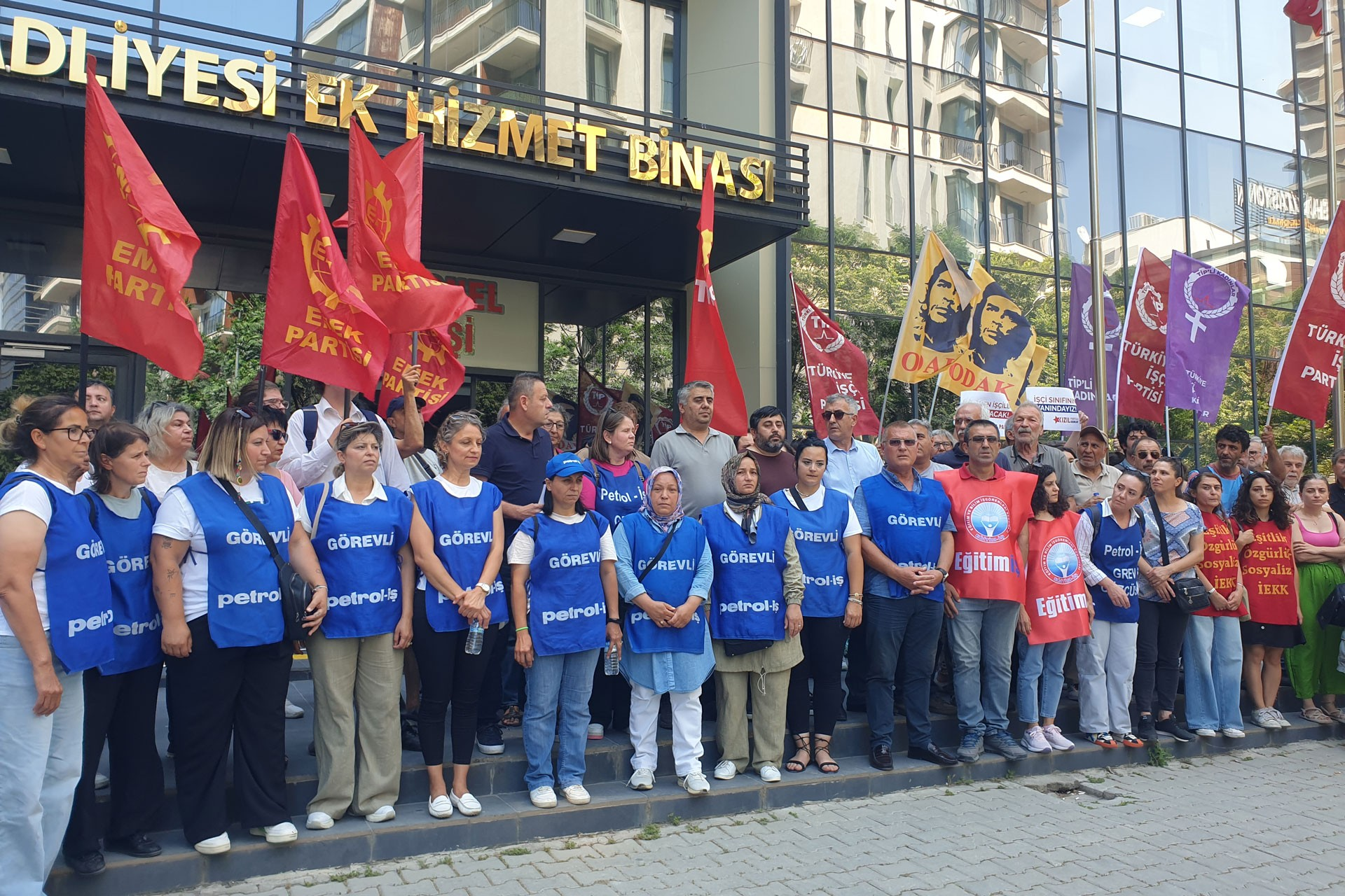 Dava öncesi adliye önünde basın açıklaması yapıldı. Açıklamaya, siyasi parti üye ve yöneticileri ile sendika temsilcileri destek verdi.