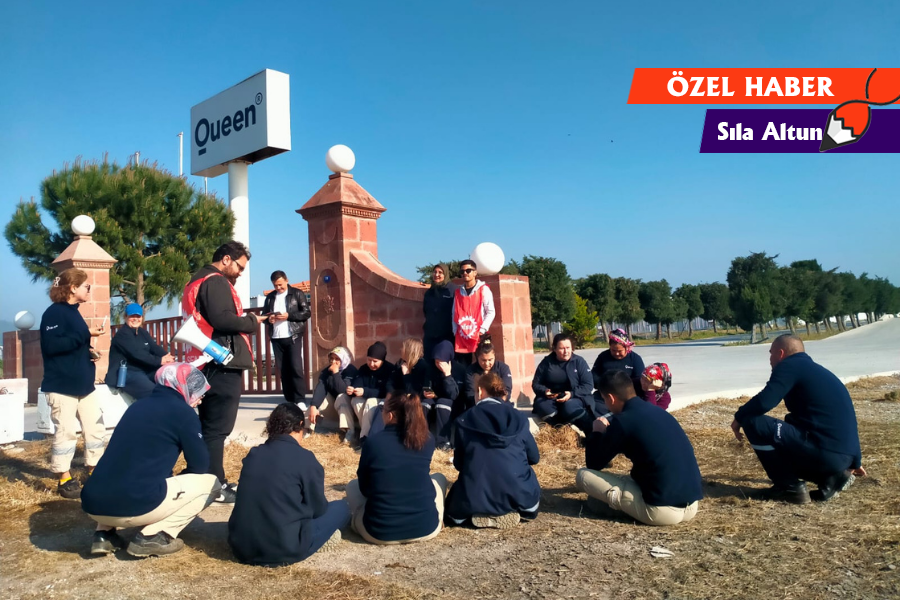 İzmir Dikili’de faaliyet gösteren Queen Tarım firmasında çalışan işçiler şiddet, mobbing ve sendikal haklarına yönelik saldırılarla boğuşuyor. DİSK’e bağlı Birleşik Tarım ve Orman İşçileri Sendikası’nın (BTO-Sen) aktardığına göre patron yetki itirazı, tehdit, şiddet, düşük ücret politikası gibi birçok yolu çoğunluğu kadın işçilerden oluşan serayı baskılamak için kullanıyor.
