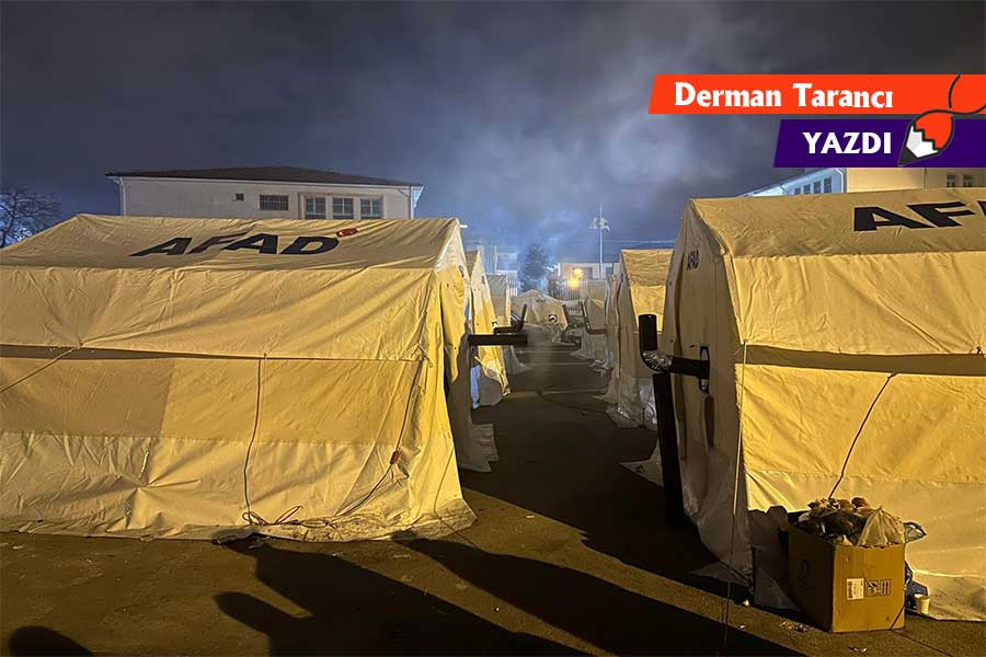 Evet! Depremdi. Ne yapılabilirdi? Nerede oluyordu? Soruları havada uçuşuyordu. Enkaz altında kalan var mıydı? Can havli ile kaçışan insanların korku ve telaş içinde bağırışları yükselmeye başlamıştı, “Deprem öldürmez rant öldürür, kapitalis hırs öldürür.” O gün hem kendimizle uğraşırken aynı zamanda deprem bölgesinden haberler almaya başladık. Bölgeden sürekli yıkım haberleri geliyordu. İnsanlarımızdan haber alamıyorduk ve hava soguk, yağmurlu bir geceydi, gün aydınlanmaya başlamıştı.