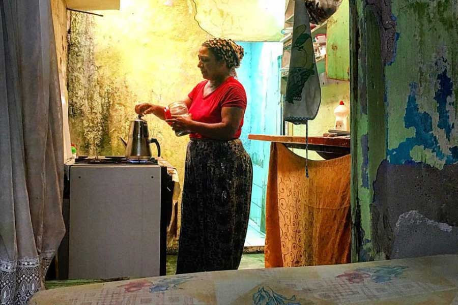 “Günlük çalışma dışında çalışan Romanlar arasında da bu süreçte ücretsiz izne çıkarılanlar var. Ücretsiz izne çıkartılanlar, sosyal yardım bile alamıyor. Örneğin, tekstilciymiş artık çalışamıyor, ücretsiz izinde. Komi, sekreter, otel görevlisi… Bu insanlar aslında çalışıyor göründükleri için sosyal yardım dahi alamayacak olan insanlar... Bu insanlar arasında kirasını ödeyemeyen bir sürü aile var. ”Fotoğraf: Hilal Tok