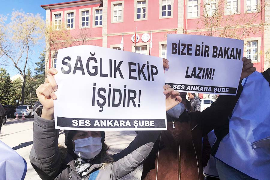 SES İzmir Şube, İzmir Tabip Odası, Sosyal Hizmet Uzmanları Derneği İzmir Şubesi, İzmir Eczacı Odası, Diş Hekimleri Odası ve Tüm Rad Der, İzmir İl Sağlık Müdürlüğü önünde “Sağlık ekip işidir” diyerek basın açıklaması düzenledi.