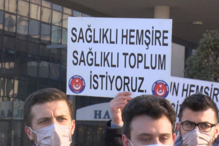 Ankara’da SES Ankara Şubesi, Ankara Tabip Odası, Devrimci Sağlık İşçileri Sendikası ve Ankara Diş Hekimleri Odası yaptıkları eylemle hemşire Ömür Erez’in öldürülmesine tepki gösterdi. İbni Sina Hastanesi önünde yapılan açıklamada konuşan SES Ankara Şube Başkanı Nazan Karacabey, “İş yerlerimizde sağlık emekçilerine, özellikle kadın sağlık ve sosyal hizmet emekçilerine yönelen şiddet kesinlikle kadına yönelen şiddetten bağımsız düşünülemez. Evde sokakta işyerlerimizde neredeyse her gün bir kız kardeşimizin yaşam hakkı erkekler tarafından elinden alınarak katlediliyor” dedi. Pandemiyle mücadele eden sağlık ve sosyal hizmet emekçilerinin giderek artan sağlık şiddetine de maruz kaldığını dile getiren Karacabey “Nasıl bir sağlık hizmet düzenidir ki, hastaneler artık sağlıkla değil şiddetle anılmaktadır. Mevcut sağlık sisteminde herkes mutsuz, en çok da sağlık emekçisi mutsuzdur. Sağlıktan mutlu olan tek kesim sağlıkta dönüşüm sayesinde oylarımız artmıştır diyenlerdir” dedi.