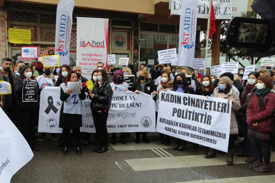 Sağlık emek ve meslek örgütleri Hemşire Ömür Erez’in görev yaptığı Kartal 10 No’lu Aile Sağlığı Merkezinde bir araya gelerek “Üzgünüz, öfkeliyiz. Kadına yönelik şiddet ve sağlıkta şiddet son bulsun” dedi. Burada İstanbul Tabip Odası ve Sağlık ve Sosyal Hizmet Emekçileri Sendikası (SES) Anadolu Şubesi tarafından yapılan ortak açıklamada, “Hem kadın hem de sağlık emekçisi oldukları için şiddete maruz kalıyor, öldürülüyoruz. Sağlıkta ve kadına yönelik şiddet failleri cezalandırılmıyor, her bir cezasızlık haberi bir sonraki potansiyel faili cesaretlendiriyor” denildi.