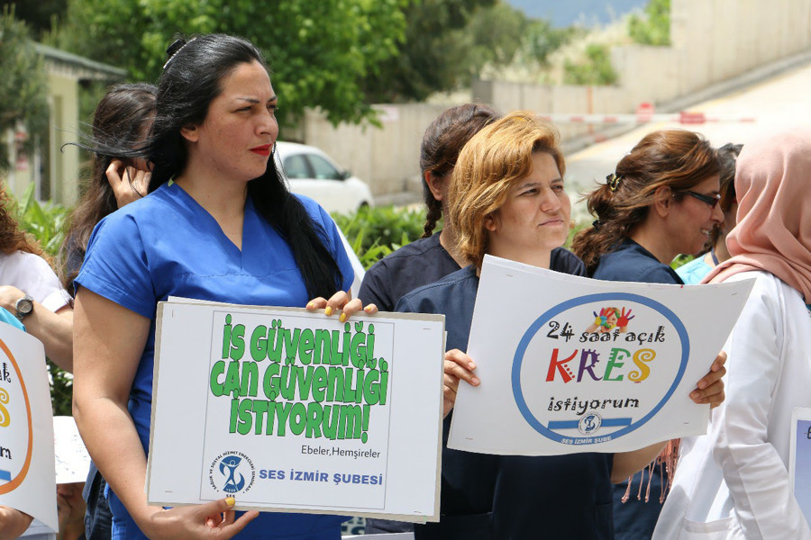 SES İzmir Şubesi Eş Başkanı Nursel Yücesoy: Hastanelerin 24 saat ücretsiz hizmet veren kreşler açılmasını istiyoruz.