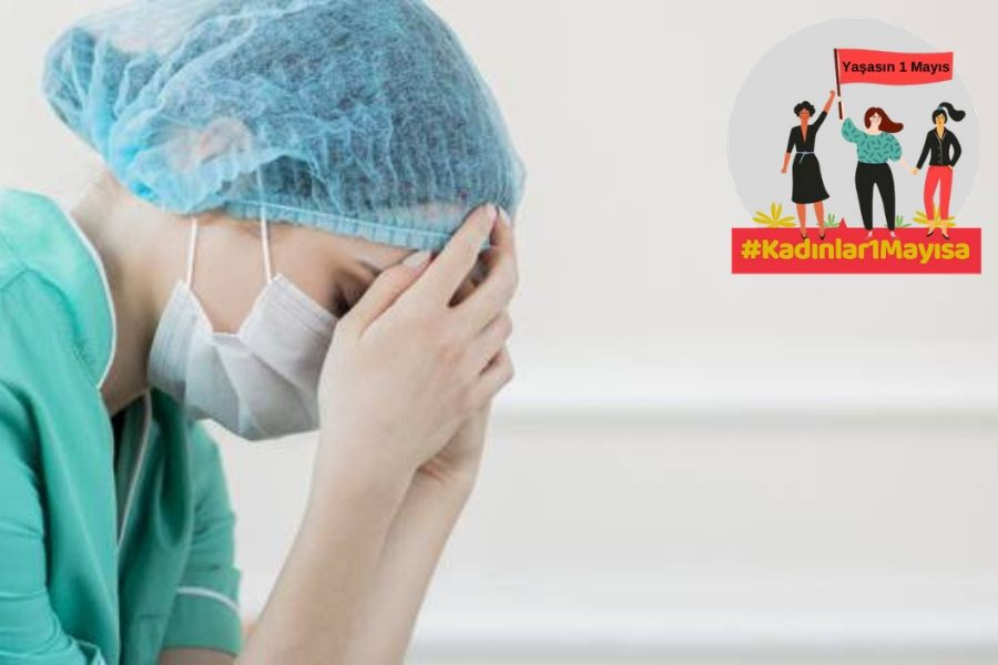 Koronavirüs salgınında binlerce sağlık emekçisinin hayatı da değişti. Zorlu ve riskli ortamda çalışma, endişe, kaygı, yarınını bilememe haliyle en çok sağlık emekçileri yüzleşti. Yüzlerce sağlık emekçisinin enfekte olmasının başlıca sebepleri önlemlerin, koruyucu ekipmanların yeterli olmaması ve ülkemizin ‘Geliyorum’ diyen salgına hazırlıksız yakalanması oldu. Kadın sağlık emekçileri de hastanelerde kaygıyla hayat kurtarmaya çalışırken evlerine de kaygıyla dönerek ailesiyle arasına mesafe koymak zorunda kaldı, yükleri arttı. Görüştüğümüz hemşire kadınlar özellikle hemşirelerin enfekte hastalarla yüz yüze geldiğini, beslenme ve barınma gibi sorunlar yaşandığını, hastanelerdeki hiyerarşik yapının ve liyakatın bu süreci daha da zorlaştırdığını, sürecin iyi yönetilmediğini vurgularken 1 Mayıs taleplerini de dile getirdi.