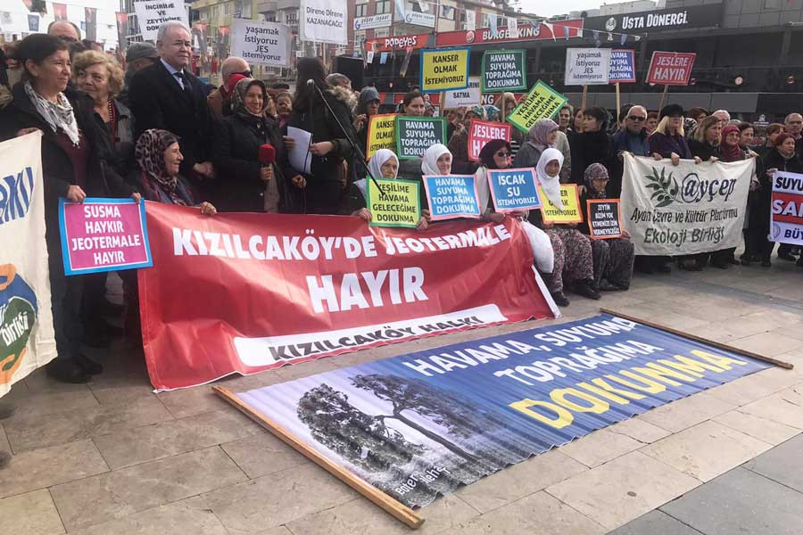 Jeotermal enerji santrali (JES) yapılmasına karşı verdikleri mücadele ile gündeme gelen ve bu direniş sonrası JES çalışmalarını durduran Aydın Kızılcaköy'de JES yapımı yeniden gündeme geldi. Dünyada ve Türkiye’de insanlar Kovid-19 salgınından korunmak için uğraşırken sermaye salgını fırsata çevirerek Kızılcaköy’de yapılması planlanan jeotermal enerji santrali (JES) için ÇED onayı verdi.
