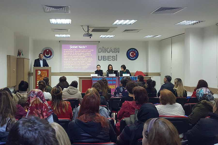 İnşaat Mühendisi Gizem Kasırga ve Psikolog Şükran Doğan’ın konuşmacı olarak katıldığı panelde konuşan Şube Başkanı Tarık Sayın, emekçi kadınların mücadelesi ve örgütlenmesine destek olmak için ellerinden geleni yapacaklarını söyledi.