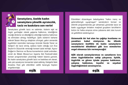 EŞİK sanatçılara yönelik ayrımcılığa, tacize, baskılara ve konserlerinin iptal edilmesine karşı açıklama yaptı.