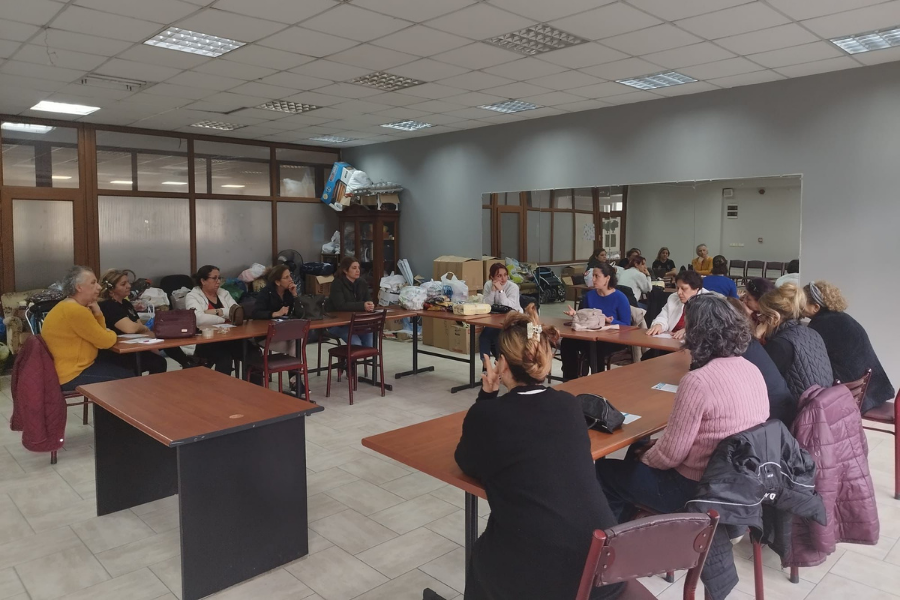 Toplantı sonunda depremzede kız kardeşleri için getirdikleri erzakları toparladılar. Beraber ip alıp bol miktarda atkı bere örüp deprem bölgesine gönderme kararı aldılar.