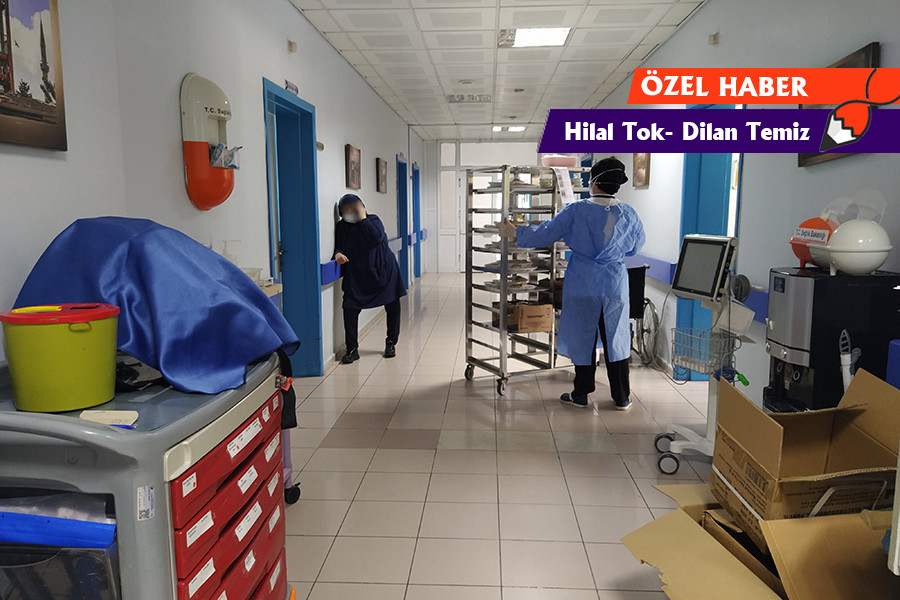 Pandemi servisine geçiyoruz. Genç hemşirelerin yoğun olduğu bu serviste sürekli bir koşuşturmaca hali hakim. Koşuşturmaca içinde sorularımızı yanıtlıyorlar. Zam meselesini sorduğumuz 27 yaşındaki bir ebe ‘müjde’ diye sunulan aldatmacaya da ağır çalışma koşullarına da tepkili: