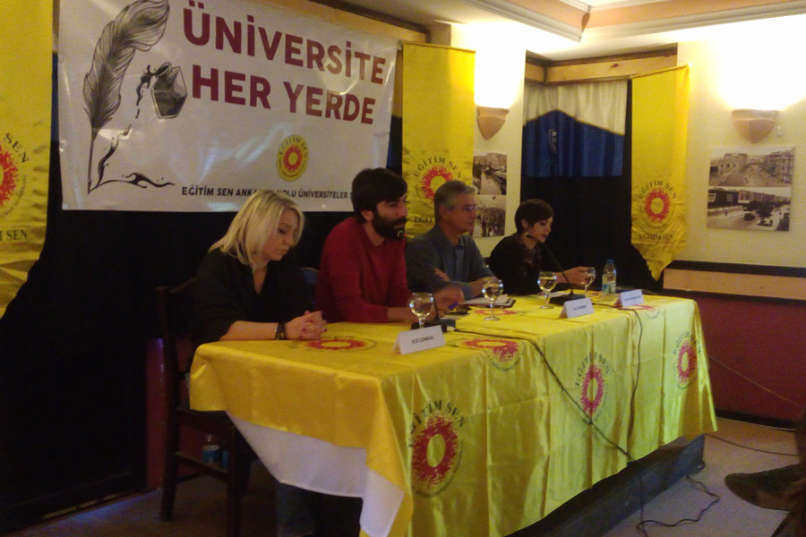 Üniversitelere, sanata, akademiye, kadın mücadelesine yapılan sistematik baskının KHK'lerle meşrulaştırılmaya çalışıldığı söylenen etkinlikte ‘Üniversiteler her yerde’ denilerek eğitimciler açılış konuşmalarını ve sunumlarını gerçekleştirdi.