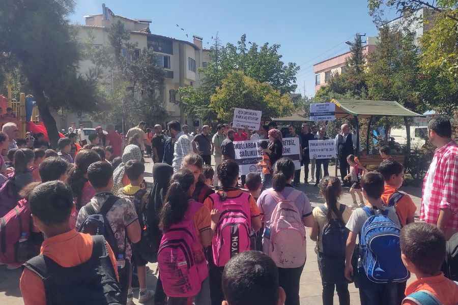 “Yoksulluk sınırı 40 bin TL sınırını aştı, açlık sınırı ise 12 bin TL’nin üzerinde. Yüksek enflasyon ve hayat pahalılığı nedeniyle her ay açlık ve yoksulluk sınırı değişiyor. Nüfusun yüzde 70’i yoksulluk sınırının altında, açlık sınırının bir tık üzerinde ücretle yaşamak zorunda kalıyor. Aileler yaşanan yoksulluk nedeniyle okula giden çocuklarına beslenme çantası hazırlayamıyor. Sınıflarda açlıktan dolayı bayılan öğrenciler var. Okul çağındaki çocuklar sadece aç kalmıyor, yaşanan yoksulluk nedeniyle milyonlarca emekçi çocuğu eğitimini tamamlamadan izbe atölyelerde işçilik yapıyor. Kız çocukları için ise erken yaşta zorla evlilikler gündeme geliyor. İktidar tüm öğrencilere, parasız bilimsel ve demokratik eğitimi sağlamak zorundadır ve aynı zamanda, her öğrenciye bir öğün sağlıklı ve besleyici yemek vermelidir. Geleceğimiz olan çocukların sağlıklı beslenme sorununun ne kadar yaşamsal olduğunun farkındayız. Milli Eğitim Bakanlığına çağrımız okul çağındaki her çocuğun beslenme sorununu çözmesidir; çocukların hakkı olan bir öğün sağlıklı ve parasız yemek hakkının verilmesidir.”